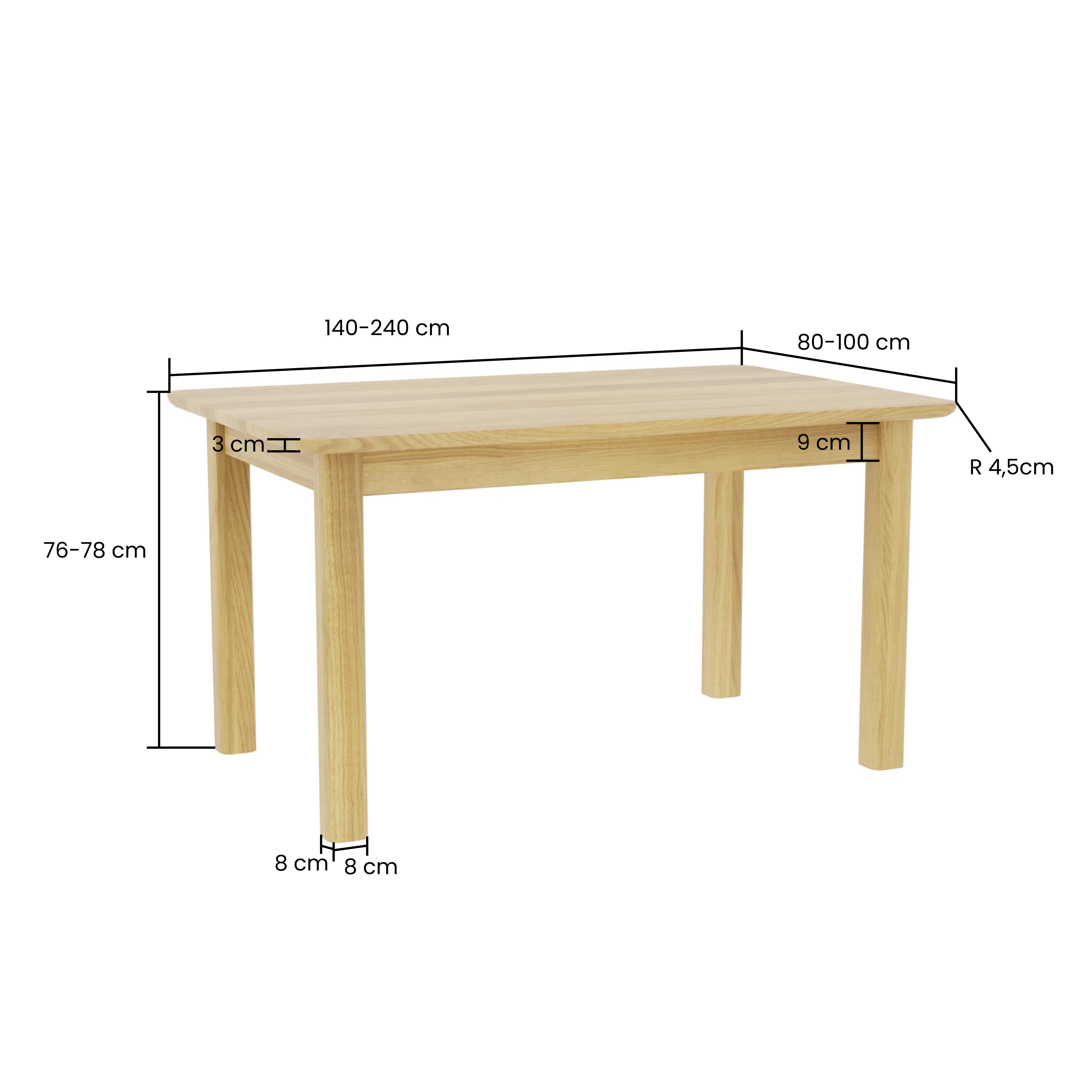 W tym modelu duże znaczenie mają detale wpływające nie tylko na wygląd, ale też wygodę użytkowania. Zaokrąglone narożniki nadają bryle lekkości i poprawiają bezpieczeństwo. Nogi o przekroju 8 x 8 cm, zaokrąglone na każdej krawędzi, podkreślają solidny charakter stołu. Z kolei filcowe podklejenie nóg oraz gumowane kółka w części rozsuwanej pomagają chronić podłogę podczas codziennego użytkowania.